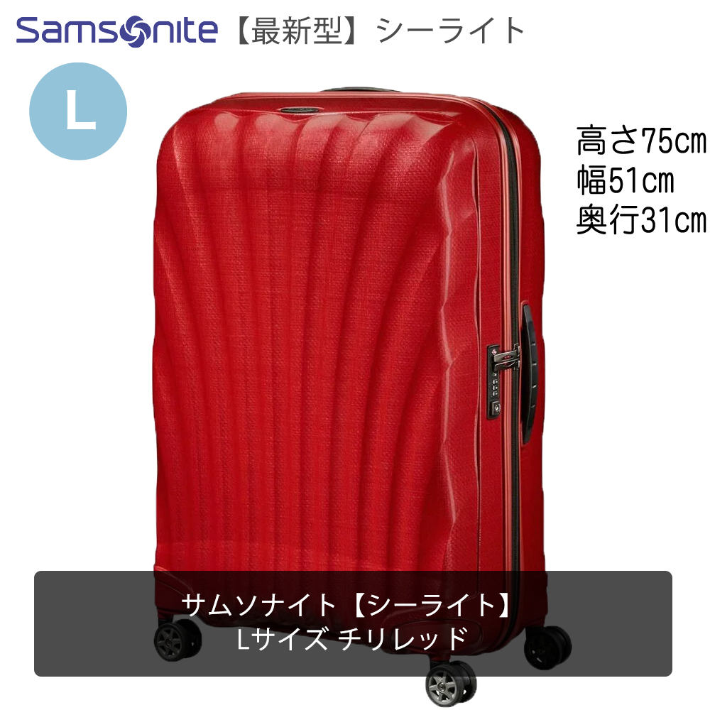 【シーライト】は、サムソナイトの最軽量シリーズ「コスモライト」の後継モデルです。Lサイズ94Lの容量なので、6泊〜10泊程度のご旅行におすすめのスーツケースです。